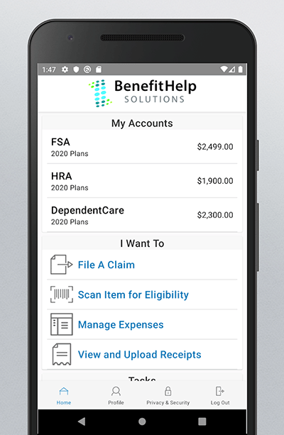 Now, there’s a simple way for you to manage your benefits on the go. The BenefitHelp Solutions mobile app lets you view your accounts with the simple touch of a finger. With real-time, digital access from your Apple® or Android™ device, you get secure access to your accounts to quickly and easily: